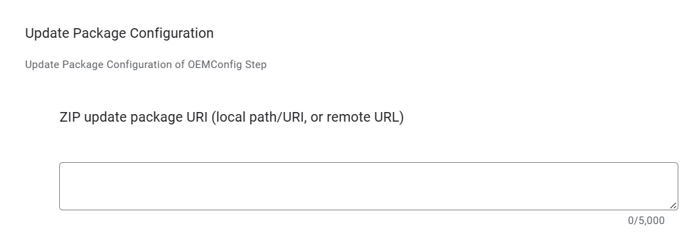 The device can be updated using the BARTEC OEMConfig app. In your MDM, add or edit the managed app configuration for the OEMConfig app. Find the offline update configuration, and enter the location of the update file. This will normally be a remote URL, but you could also specify a file path if you know that the file has already been downloaded to the device.