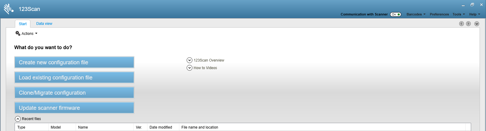 - Start the Zebra 123 Scan Utility