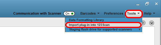 - Select “Import plugin into 123 Scan” from the drop-down menu